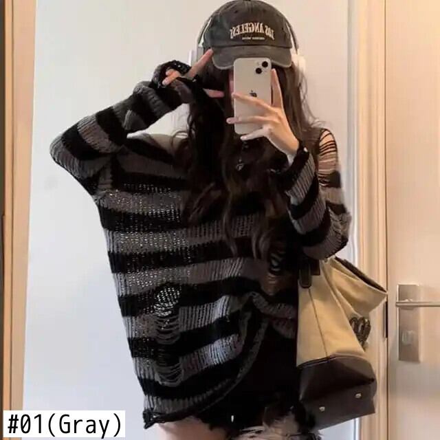 送料無料 アパレル Deeptown ゴシックストリートストライプニットセーター女性原宿パンク中空アウトジャンパーホールルーズオールマッチトップスグランジ E- かわいい AE121288787785021788723 | mihatudai(みはつばい)ネットショッピングならmihatudai