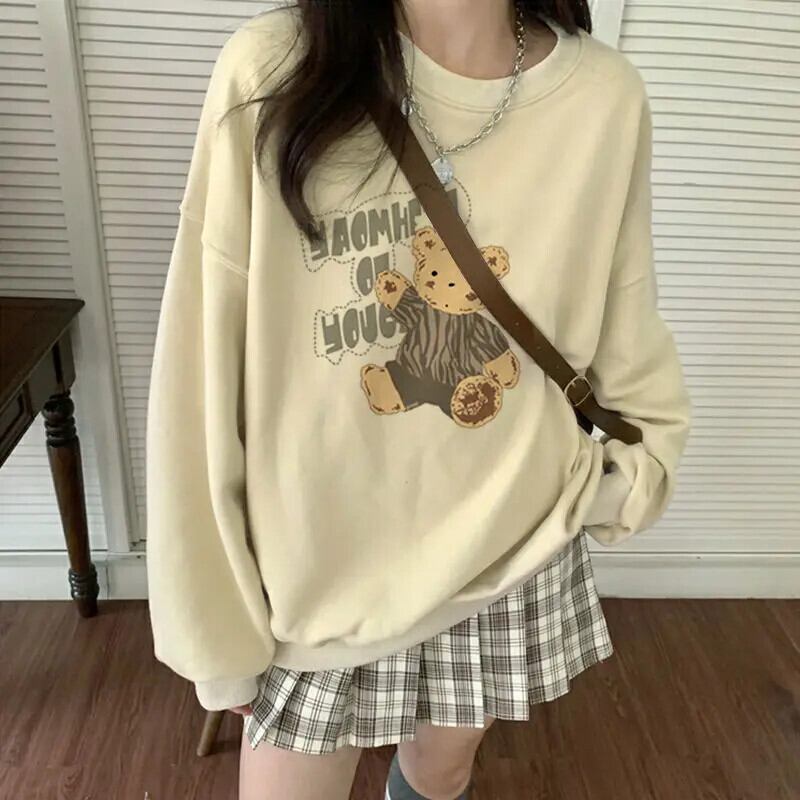 送料無料 アパレル Deeptown Bear ベージュスウェット女性かわいい甘い黒長袖プルオーバー原宿オーバーサイズルーズトップス ロング ブラック シャツ 大人ガーリー スウィート キュート カジュアル AE121288787794620258595 | mihatudai(みはつばい)ネットショッピングならmihatudai