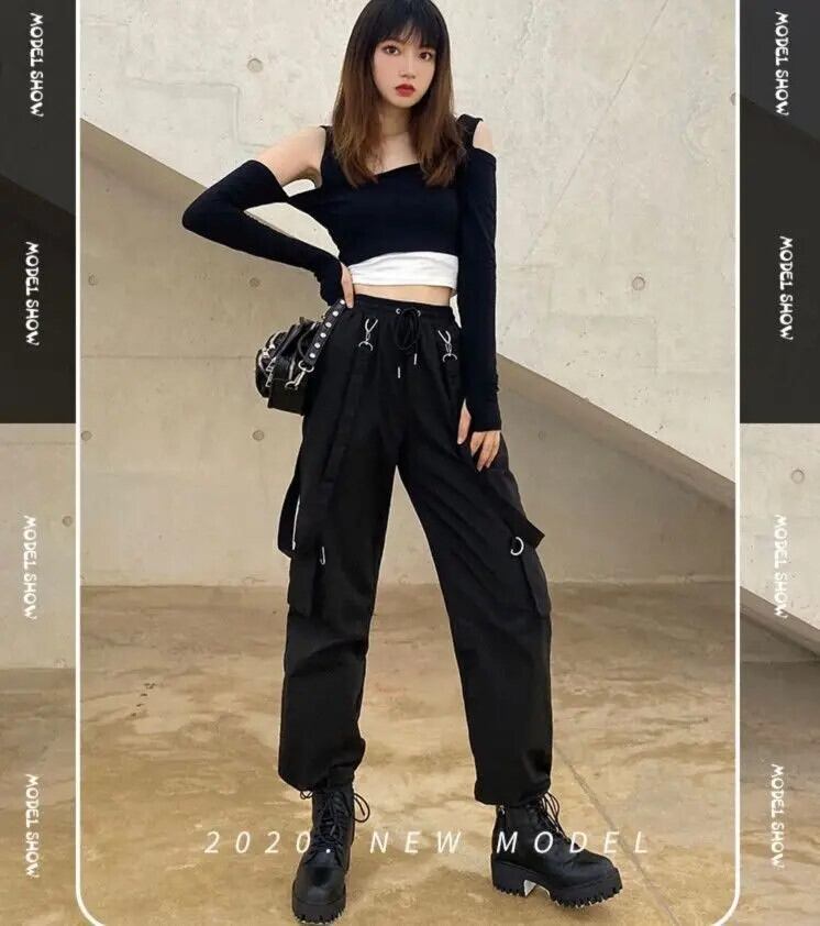 送料無料 アパレル Deeptown ゴシックカーゴパンツ女性原宿黒ウエストヒッピーストリート Kpop オーバーサイズモールゴスワイドズボン ブラック かわいい AE121288787782279043160 | mihatudai(みはつばい)ネットショッピングならmihatudai