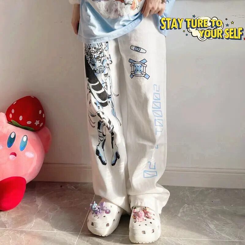 送料無料 アパレル Deeptown Y2K プリント白パンツ女性原宿マンガサブカルチャーワイド脚ズボン ese スタイル漫画スウェットパンツ ホワイト かわいい ワイドレッグ ワイドパンツ AE121288787770418606801 | mihatudai(みはつばい)ネットショッピングならmihatudai
