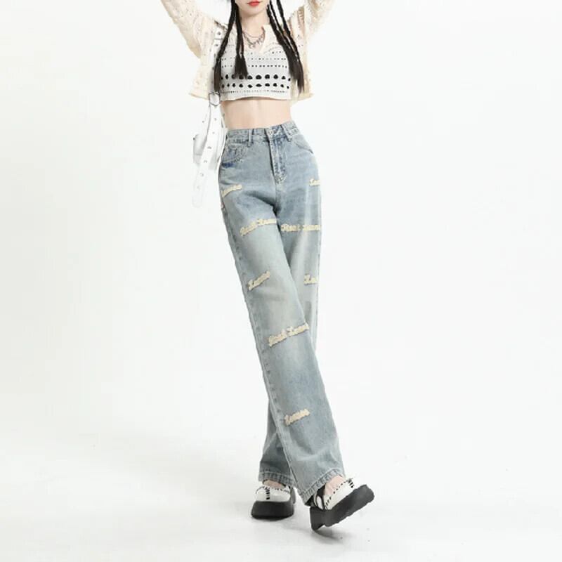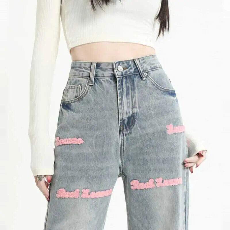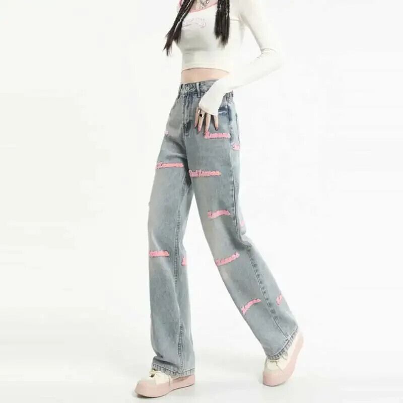 送料無料 アパレル 刺繍ジーンズ女性春秋アメリカンスタイルレトロだぶだぶのデニムパンツ原宿ストレートワイドレッグパンツストリート レッド かわいい スプリング 春物 オータム 秋物 AE12128878722006635497 | mihatudai(みはつばい)ネットショッピングならmihatudai