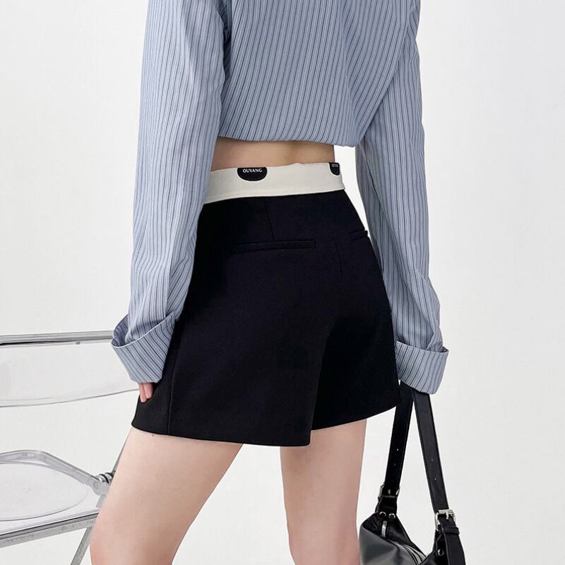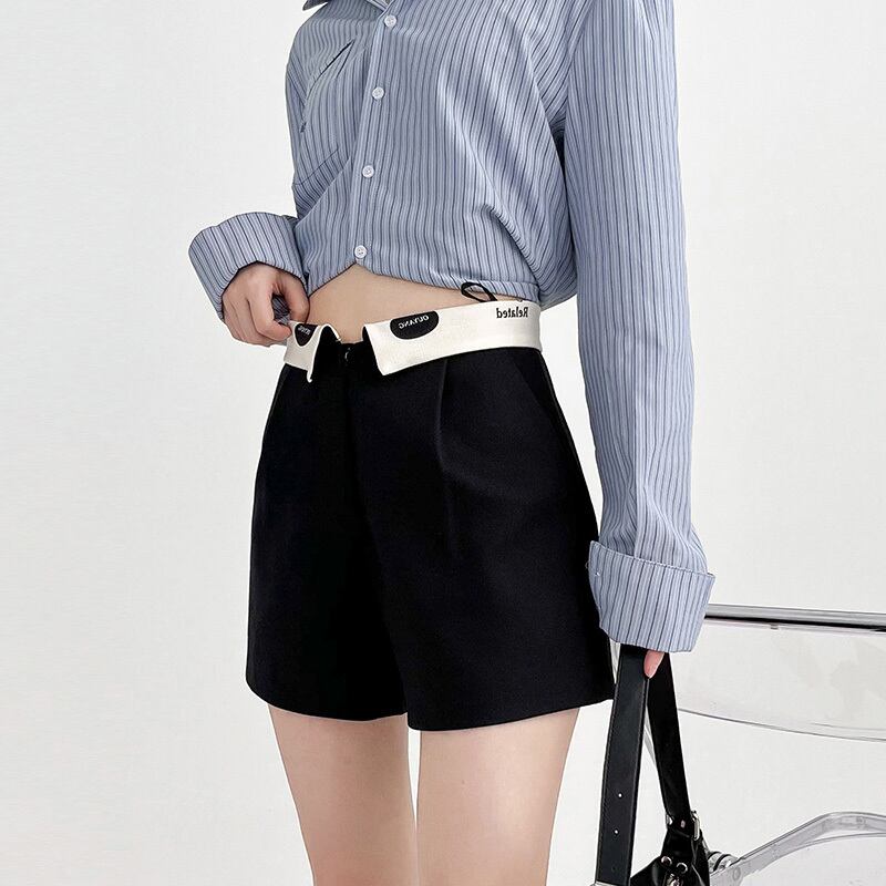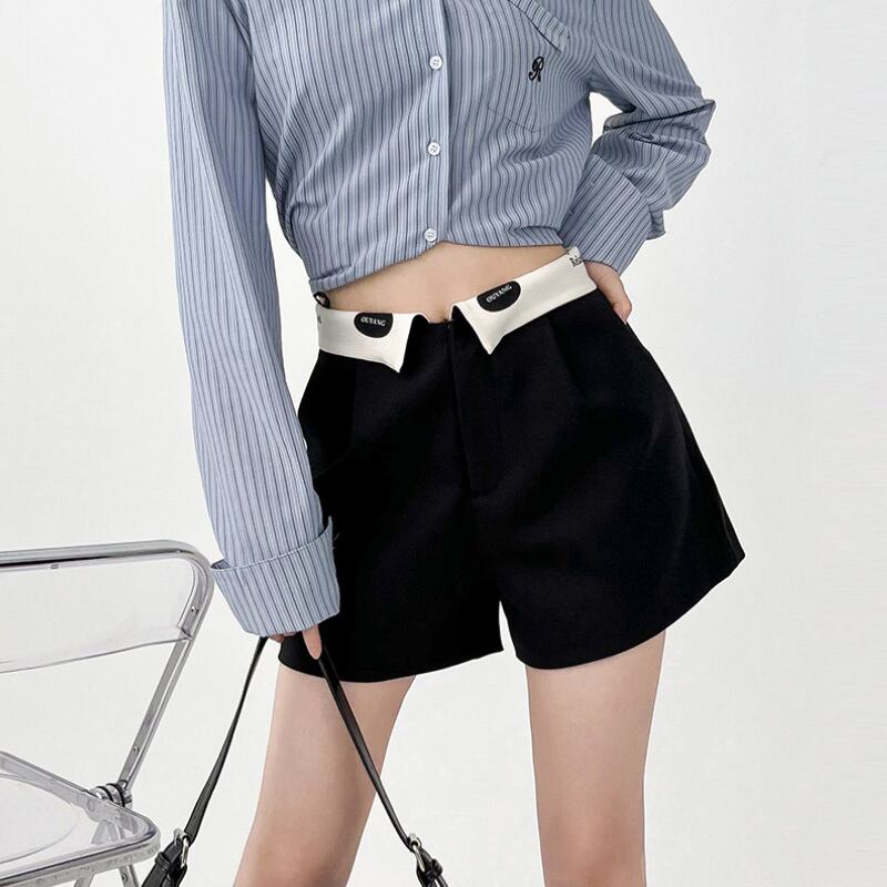 送料無料 アパレル 黒のスーツショーツ女性ターンダウン襟 A ラインショーツストレート 5 点パンツだぶだぶのヴィンテージストリート服 ブラック ブルマー ビンテージ AE12128878765279584293 | mihatudai(みはつばい)ネットショッピングならmihatudai