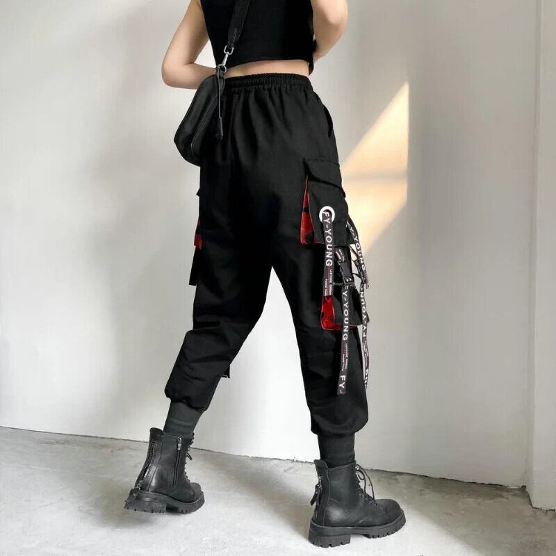 送料無料 アパレル 足首までの長さのハーレムカーゴパンツ女性パンツヒップホップストリート綿リボンジョガーボトムス服 コットン AE12128878726611405196 | mihatudai(みはつばい)ネットショッピングならmihatudai