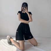 送料無料 アパレル スポーツショーツ女性ソリッドルーズストレートワイドレッグ5点パンツボトムス夏 サマー 夏物 ブルマー ワイドパンツ ソリッドカラー AE12128878748248776523