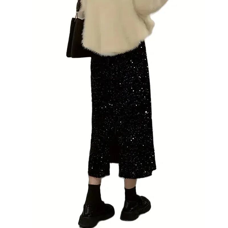 送料無料 アパレル 黒スパンコールスカート女性秋ウエストスリットロングスカート A ラインストリートスタイル Y2k ブラック オータム 秋物 AE12128878789007188467 | mihatudai(みはつばい)ネットショッピングならmihatudai