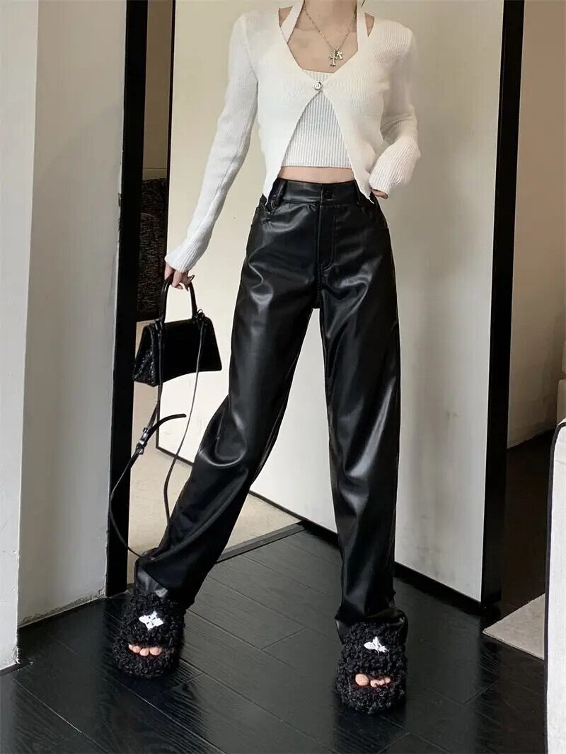 送料無料 アパレル 黒 Pu レザーパンツ女性 2023 春秋ウエストストレートワイドズボンストリートプラスサイズ ブラック 大きめサイズ スプリング 春物 AE12128878750751777061 | mihatudai(みはつばい)ネットショッピングならmihatudai