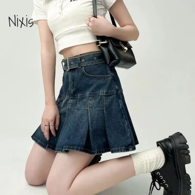 送料無料 アパレル 固体デニムプリーツスカート女性の夏の A ラインショートジーンズスカートヴィンテージスタイル Y2k ストリート サマー 夏物 Aライン ソリッドカラー ビンテージ AE12128878744488249681 | mihatudai(みはつばい)ネットショッピングならmihatudai