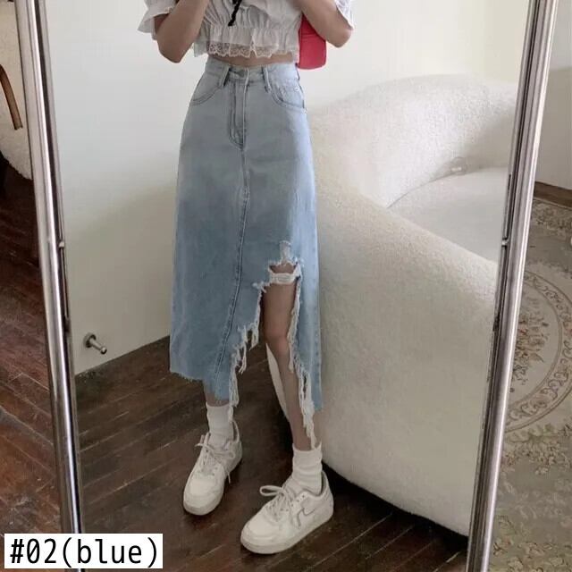 送料無料 アパレル 破れた不規則なデニムスカート女性レトロスリットミッドレングススカートウエスト大きいサイズストリートスタイル 大きめサイズ AE12128878737810546586 | mihatudai(みはつばい)ネットショッピングならmihatudai