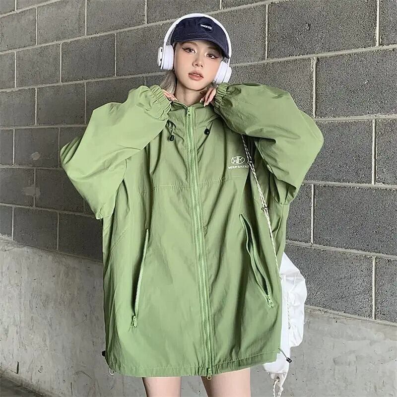 送料無料 アパレル アメリカンスタイルのジャケットの女性春秋プレッピースタイル防風ジッパーフード付きトレンディな薄手のルーズ刺繍グリーンカーゴコート スプリング 春物 オータム 秋物 AE12128878713478947385 | mihatudai(みはつばい)ネットショッピングならmihatudai