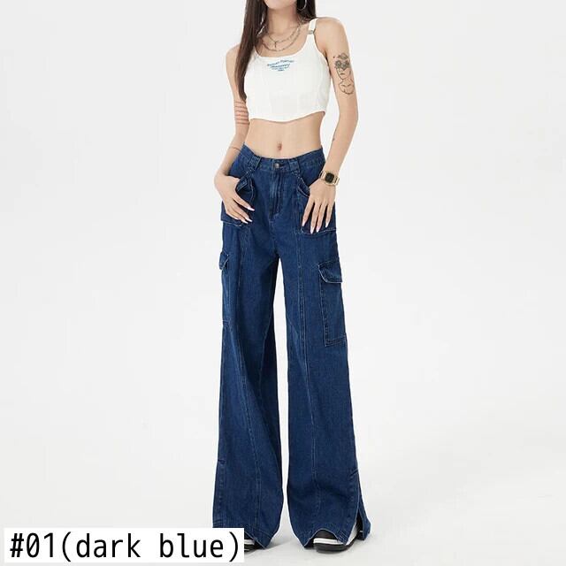 送料無料 アパレル ウエストワイドレッグジーンズ女性サイドスリットデニムパンツ春秋ヒップホップスタイルだぶだぶカーゴパンツ Y2k ストリート スプリング 春物 オータム 秋物 ワイドパンツ AE12128878712778061168 | mihatudai(みはつばい)ネットショッピングならmihatudai