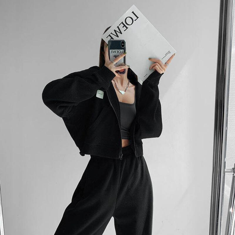 送料無料 アパレル プラスサイズのトレーナー女性薄型超ショートフード付き長袖ジャケットトップ春秋のウエストの服 ロング 大きめサイズ スプリング 春物 オータム 秋物 AE12128878787505037369 | mihatudai(みはつばい)ネットショッピングならmihatudai