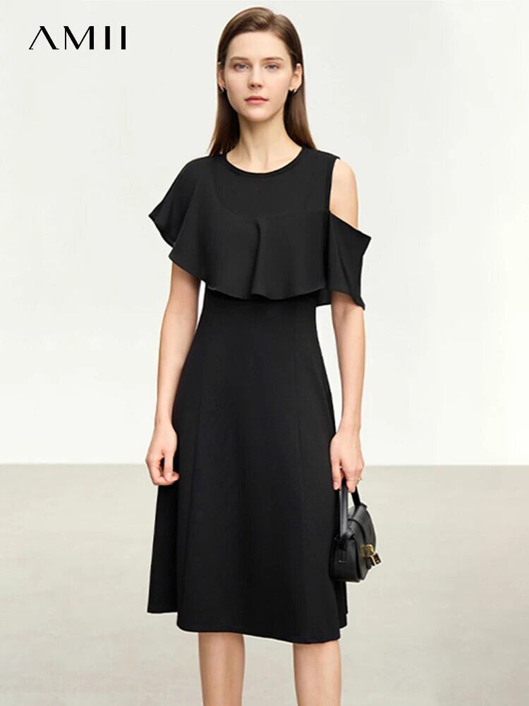 送料無料 アパレル Amii ミニマリズム 2023 夏のレディースドレスロマンチックなマッチフラウンス非対称女性の黒のドレス Vestidos 12352016 ブラック サマー 夏物 AE121222385911347764 | mihatudai(みはつばい)ネットショッピングならmihatudai