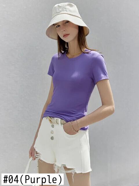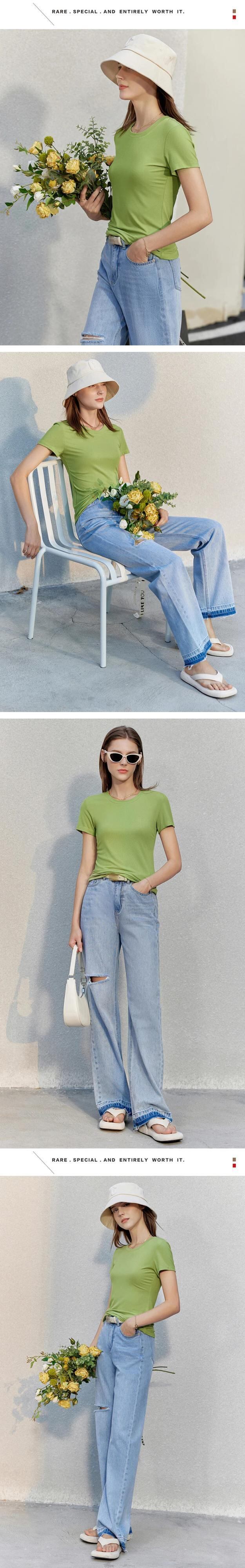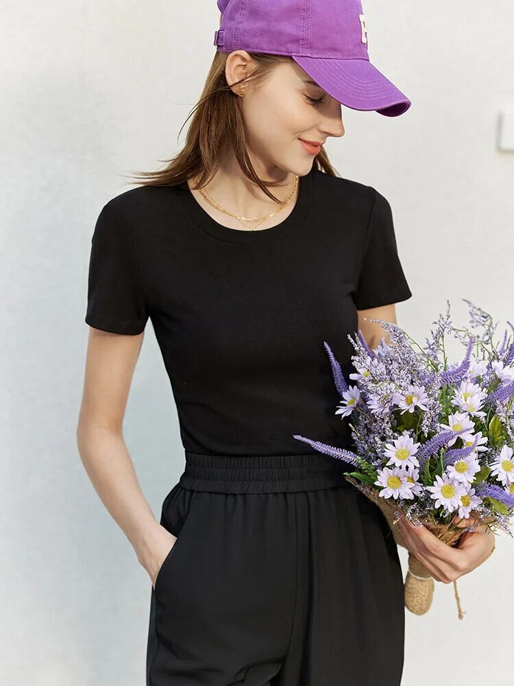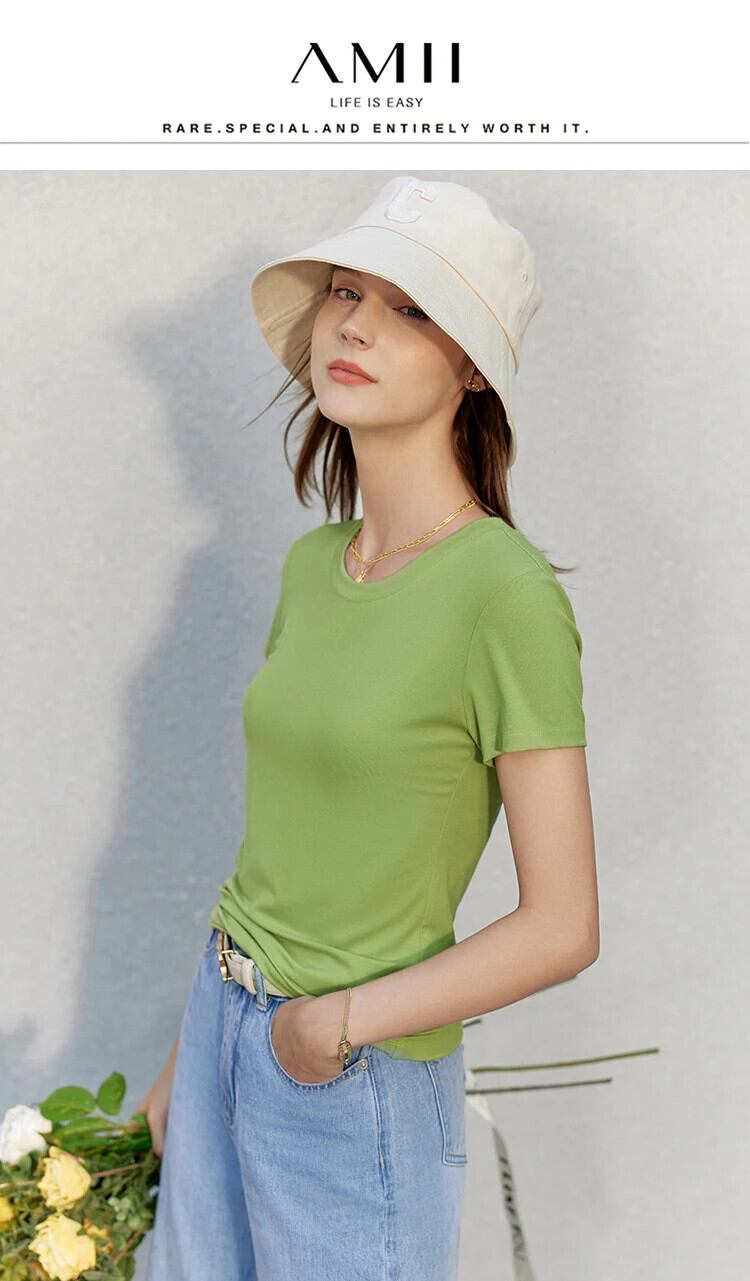 送料無料 アパレル Amii ミニマリズム 2023 夏の Tシャツの女性の服半袖 O ネック Tシャツ Tシャツスリムトップス 12230239 ショート ハーフスリーブ サマー 夏物 Oネック AE1212223860826624