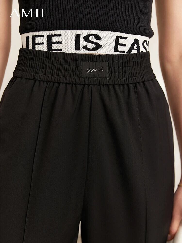 送料無料 アパレル Amii 2023 春黒ズボン女性のアイスオキシジェンクール足首丈パンツウエスト細いストレートパンツ 12240274 ブラック スプリング 春物 AE121222335607851296