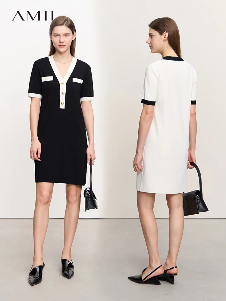 送料無料 アパレル AMII ミニマリズムドレス女性 2023 夏レトロシックな対照的な色 V ネックニット Vestidos 12342640 サマー 夏物 Vネック AE121222342404051472 | mihatudai(みはつばい)ネットショッピングならmihatudai