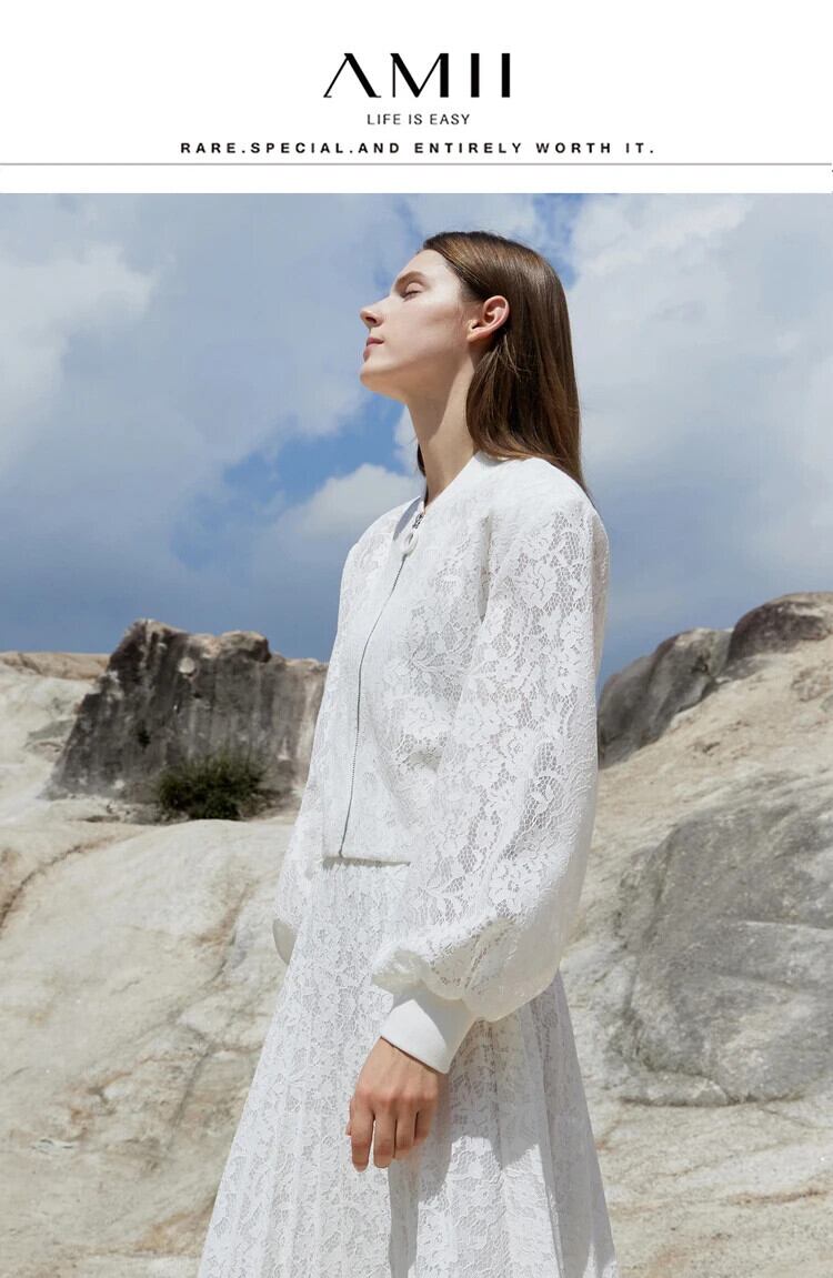 送料無料 アパレル AMII ミニマリズムジャケット女性 2023 春ニッチレースジッパージャケットフレンチプチランタンスリーブコート 72280043 スプリング 春物 AE1212223268420200