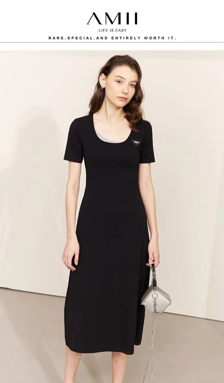 送料無料 アパレル AMII ミニマリズム 2023 夏の綿 O ネックロングドレス女性オフィスレディ半袖 Vestidos 72312002 ショート コットン ハーフスリーブ サマー 夏物 Oネック 会社 学校 通勤や通学にも AE121222311404497714 | mihatudai(みはつばい)ネットショッピングならmihatudai