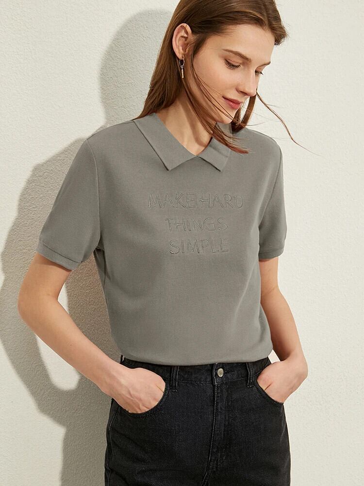 送料無料 アパレル AMII ミニマリズム POLO ネック レディース Tシャツ 2023 夏 無地 刺繍 綿 100% ニット Tシャツ レディース Tシャツ 12230225 コットン サマー 夏物 ソリッドカラー AE121222312734260230