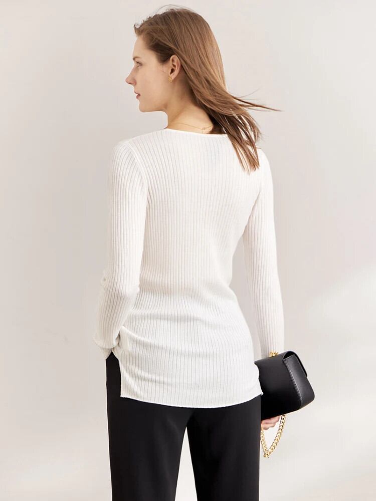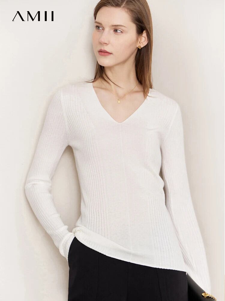 送料無料 アパレル Amii ミニマリストセーター女性 2022 秋ソリッド非対称 V ネックスリムオールマッチヴィンテージプルオーバートップス 12240661 オータム 秋物 Vネック ソリッドカラー ビンテージ AE12122231425639257
