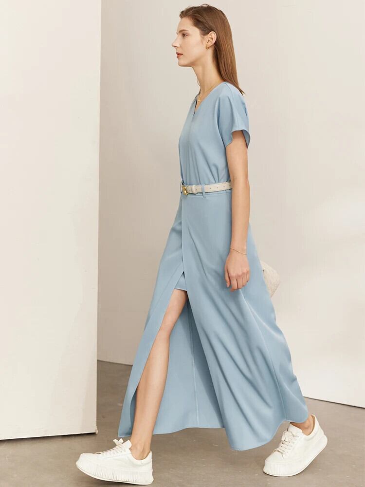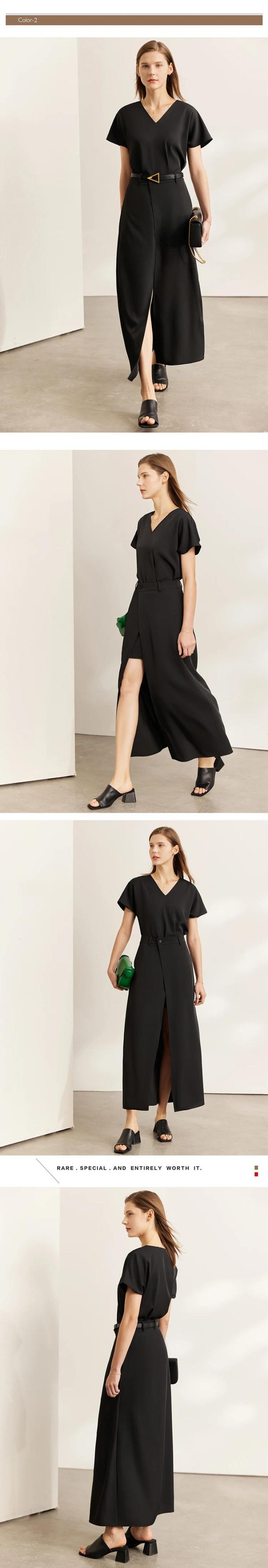 送料無料 アパレル AMII ミニマリズムドレスの女性 2022 夏プルオーバー V ネックオフィスレディスプリット Aline Vestidos ブラックレディドレス 12270164 サマー 夏物 会社 学校 通勤や通学にも AE121222366847498107