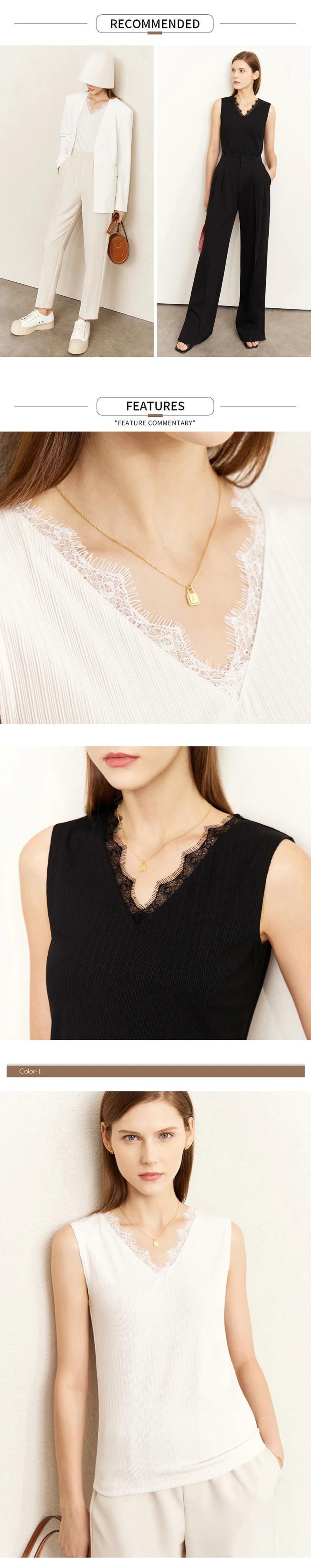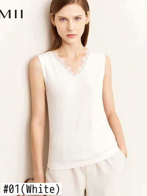 送料無料 アパレル AMII ミニマリズム夏の女性のベスト 2022 Sevy V ネックノースリーブ Lece Pactwork キャミソール薄い固体 12240873 サマー 夏物 ソリッドカラー AE121222352488869356