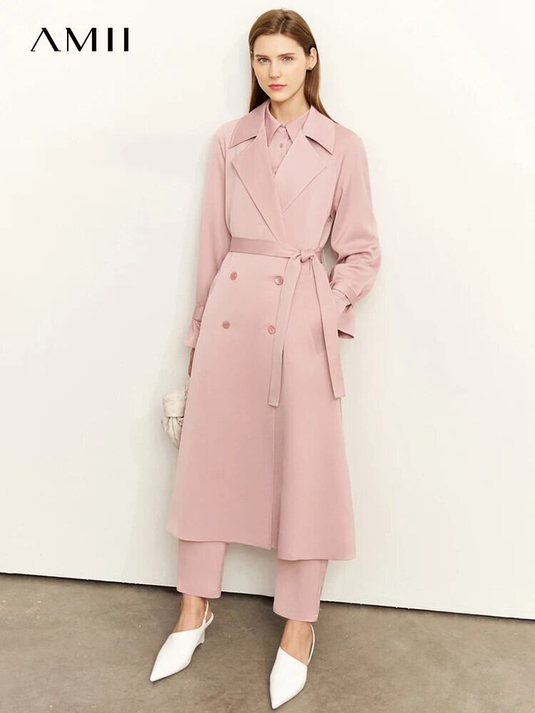 送料無料 アパレル AMII ミニマリズムロングトレンチコート女性 2022 秋ベルトダブルブレッド固体通勤ルーズジャケット 12270119 オータム 秋物 ハーネス ソリッドカラー AE121222386465595746