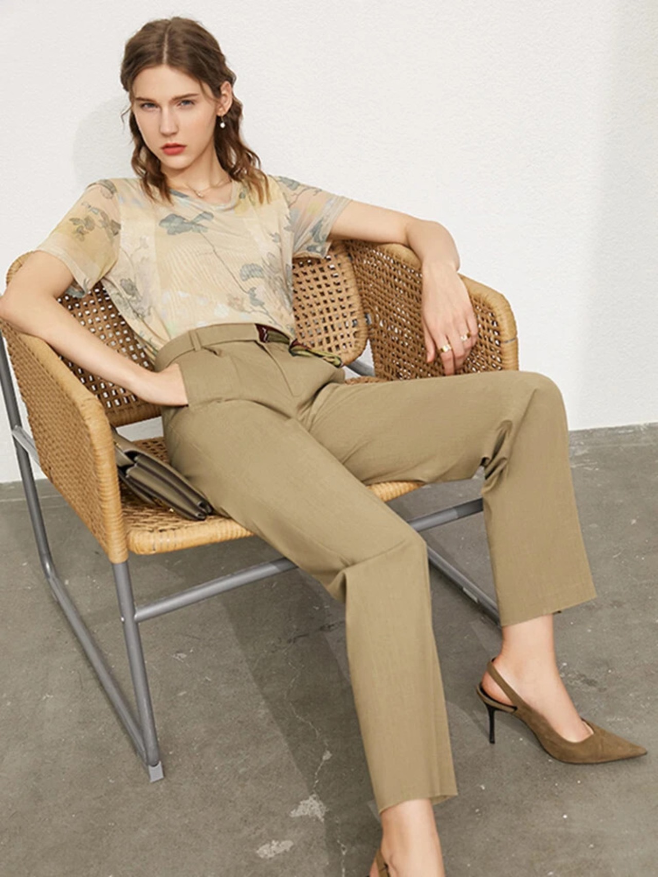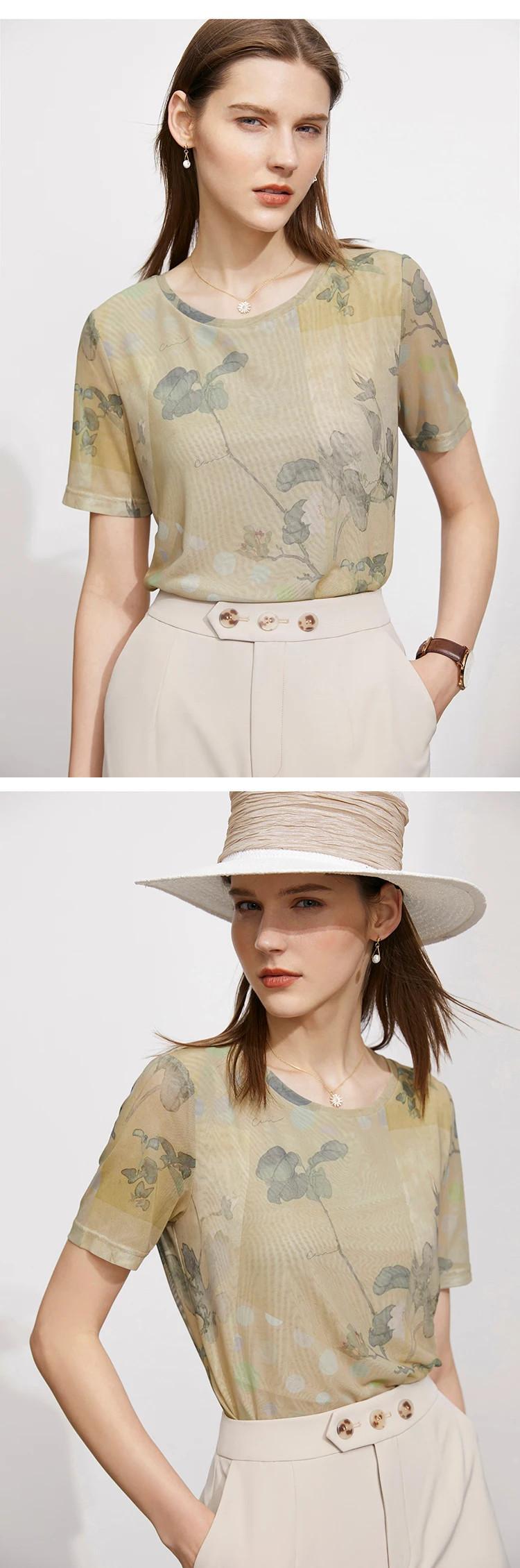 送料無料 アパレル AMII ミニマリズム中国風プリントトップ女性弾性メッシュ 2023 夏半袖 Tシャツ 12342283 ショート ハーフスリーブ エラスティック 伸縮 サマー 夏物 AE121222328672542464