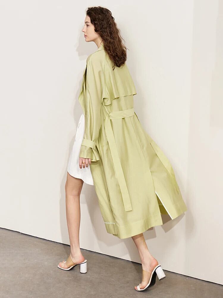 送料無料 アパレル AMII ミニマリズムコート女性 2023 春ダブルブレストベルト付きロングトレンチコートスプリットトップ女性コート 72341040 スプリング 春物 ハーネス AE12122236037868592