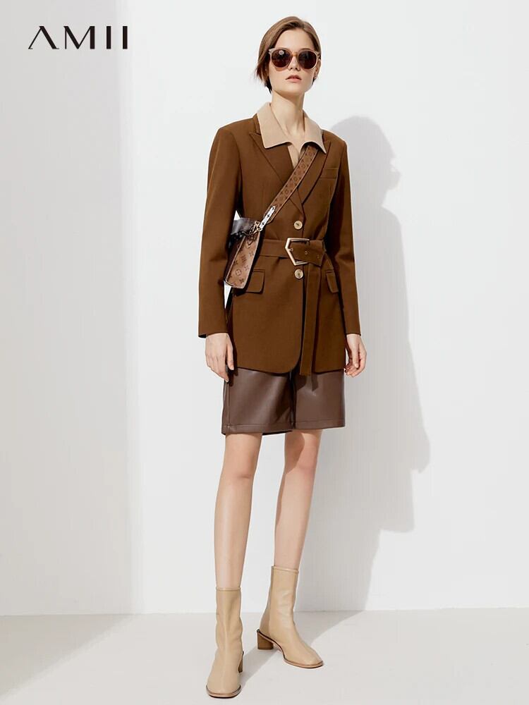 送料無料 アパレル AMII ミニマリズムブレザー女性 2023 春オールマッチソリッドシングルブレストスラッシュネックオフィスレディコート 12140933 スプリング 春物 ソリッドカラー 会社 学校 通勤や通学にも AE121222394248424439