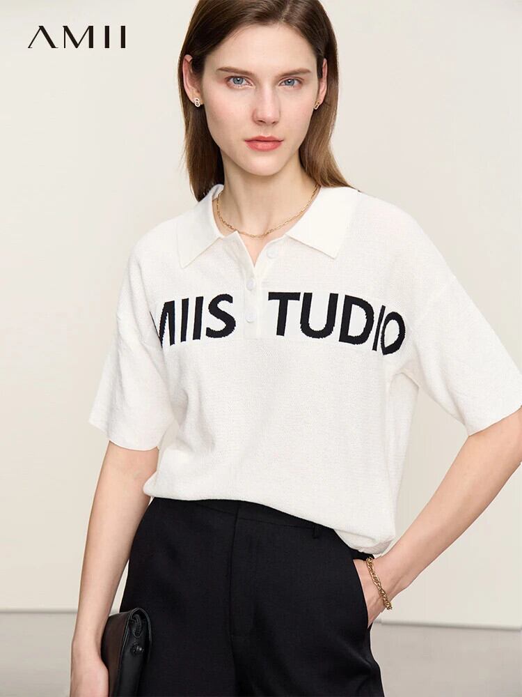 送料無料 アパレル AMII ミニマリズム レディース 半袖 ルーズ コントラスト カラー Tシャツ 綿 100% ニット セーター トップス 12342547 ショート コットン ハーフスリーブ AE121222368380591102 | mihatudai(みはつばい)ネットショッピングならmihatudai