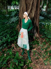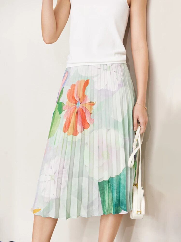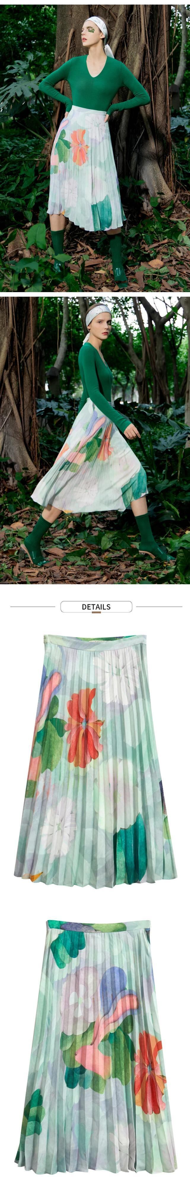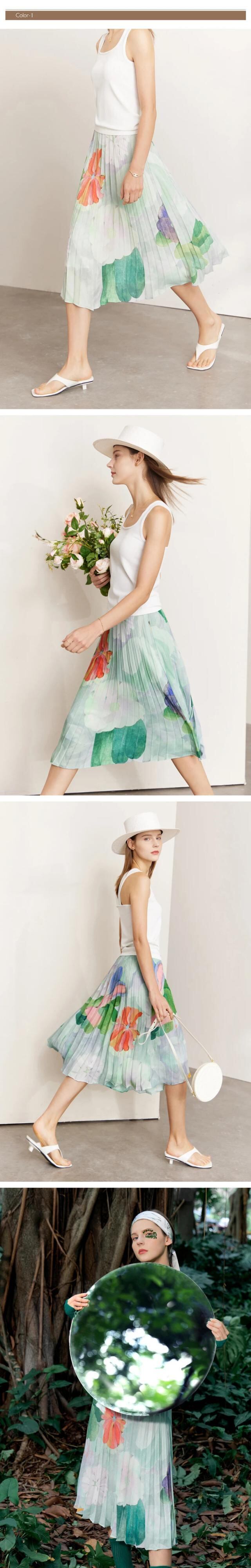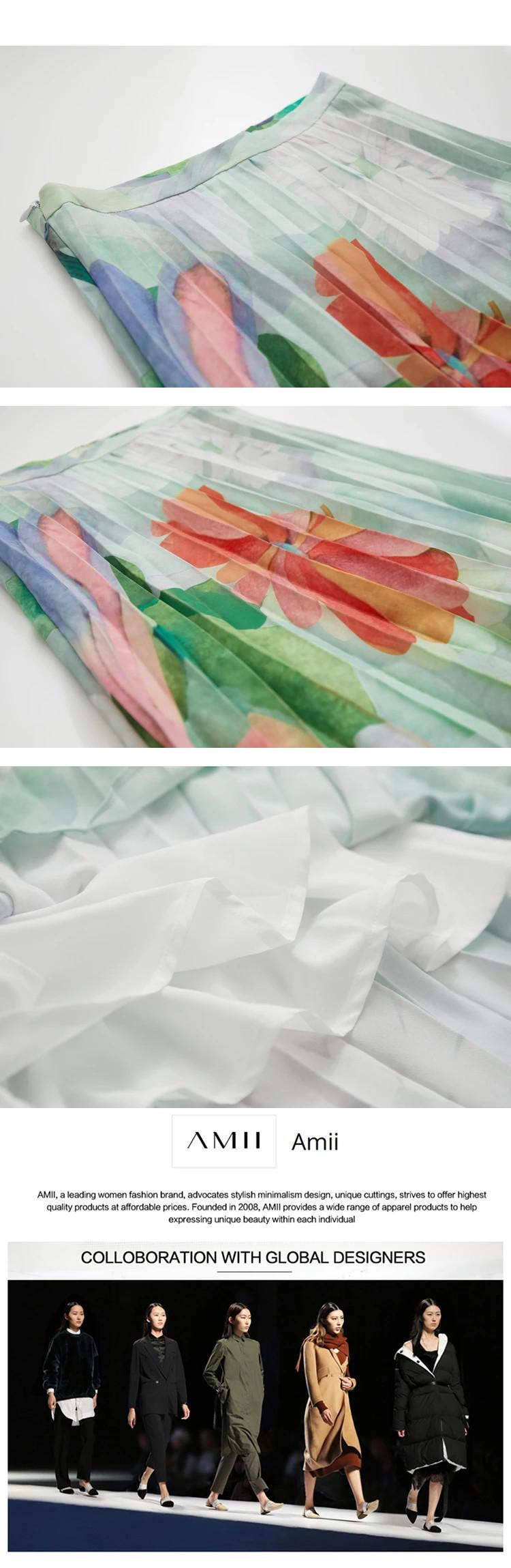 送料無料 アパレル AMII ミニマリズム 2023 夏花柄プリーツスカート A ライングリーンシフォンシックなロングスカート女性 12342275 プリント サマー 夏物 Aライン AE121222345979095786