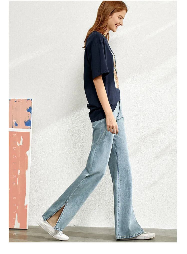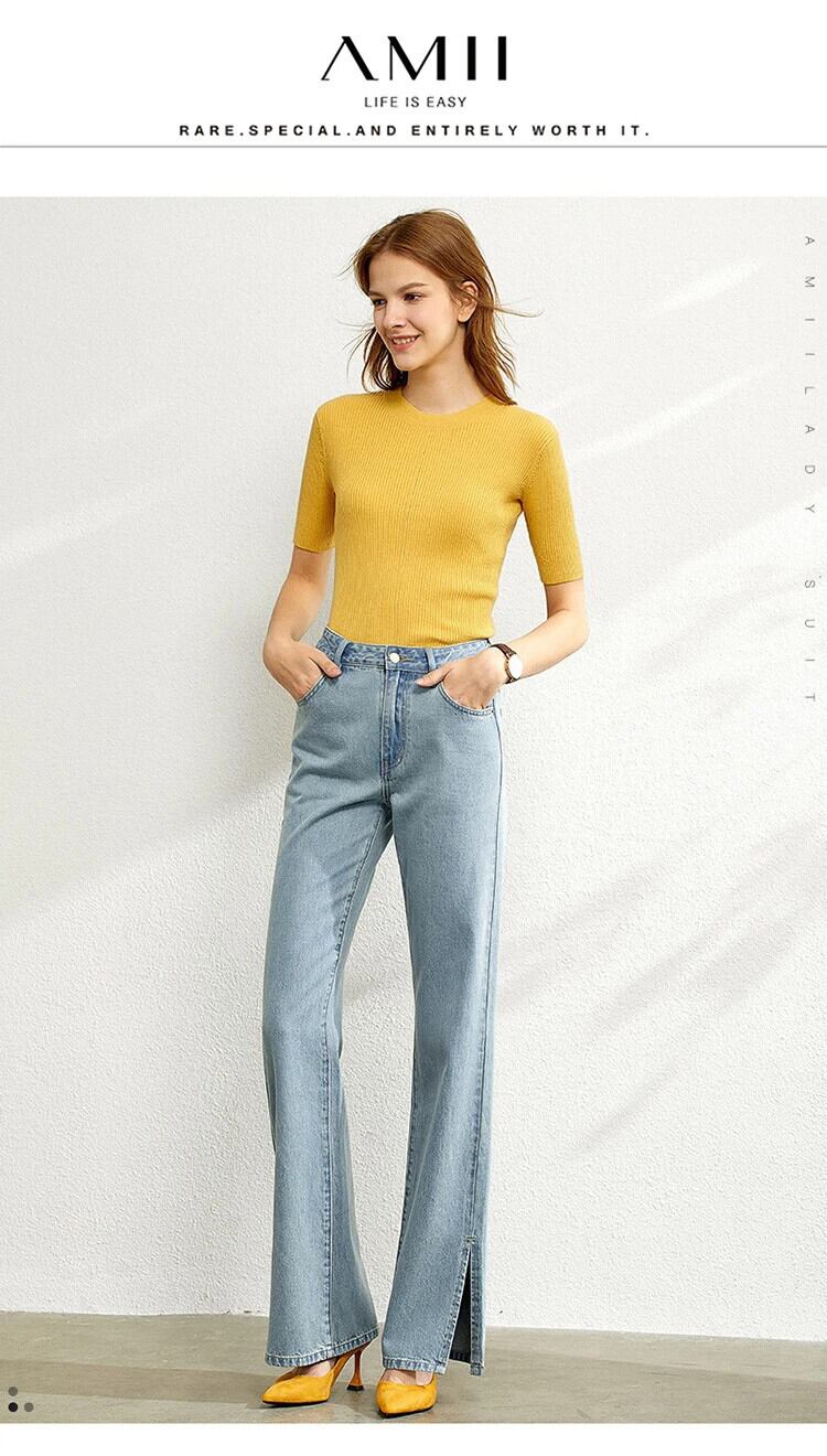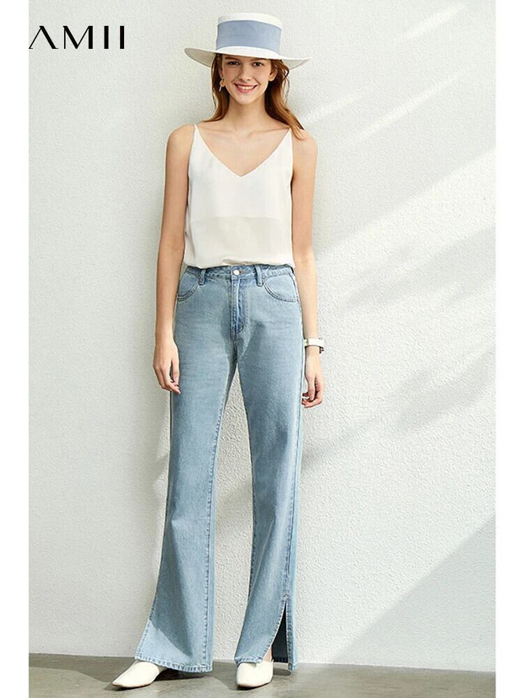 送料無料 アパレル Amii ミニマリズム 2022 オフィスレディ ジーンズ 秋 スリット 綿100% ワイドレッグパンツ ウエスト細い シンプル ストレート パンツ 12220148 コットン オータム 秋物 ワイドパンツ 会社 学校 通勤や通学にも AE121222347558072062