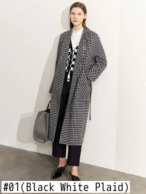 送料無料 アパレル AMII Minimalis ウールコート Wome 2022 冬チェック柄ターンダウンカラー通勤ヴィンテージコート 12270556 ウィンター 冬物 ビンテージ AE121222372290146539