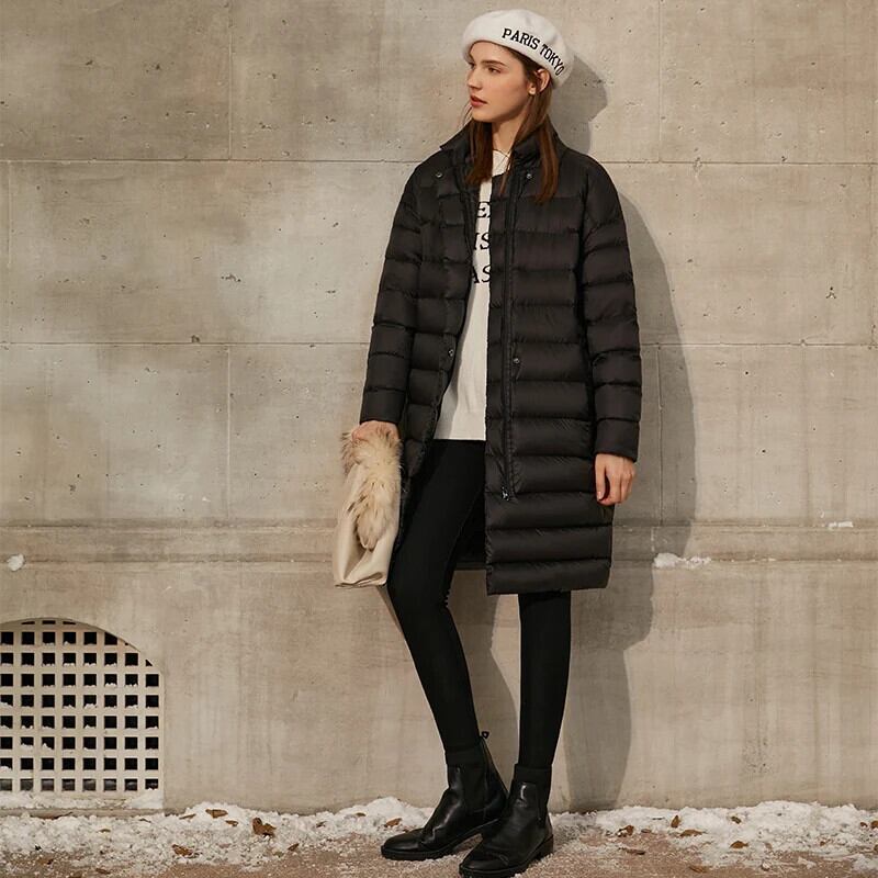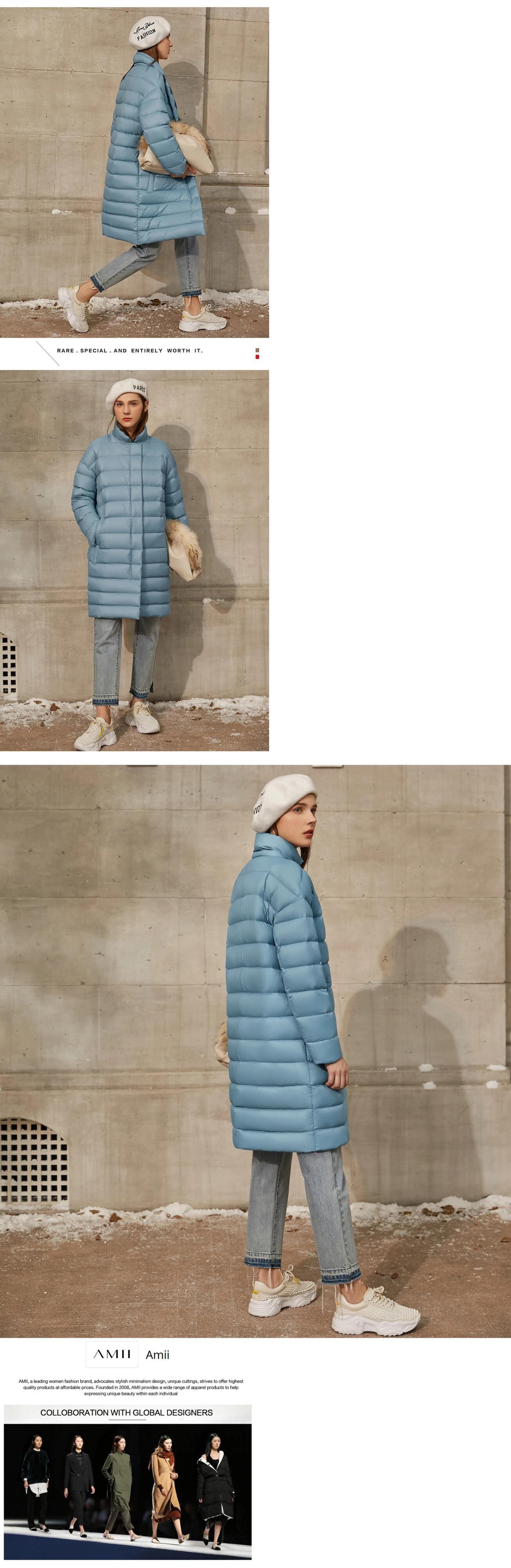 送料無料 アパレル Amii ミニマリズム ダウン ジャケット 冬 ソリッド スタンドカラー 90% ホワイト ダック ダウン レディース ダウン ジャケット 12070688 ウィンター 冬物 ソリッドカラー AE12122238642080960