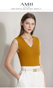 送料無料 アパレル AMII ミニマリストタンクトップ女性 2022 秋ノースリーブ通勤 V ネックソリッドトップ 12240149 オータム 秋物 Vネック ソリッドカラー AE121222351816150488