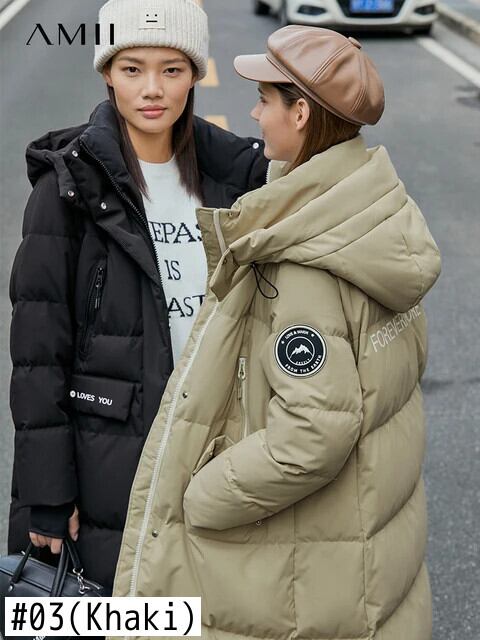 送料無料 アパレル AMII ミニマリズムロングダウンジャケットの女性 2022 冬印刷厚く暖かい固体通勤ルーズコート 12170665 ウィンター 冬物 ソリッドカラー AE121222365650483946