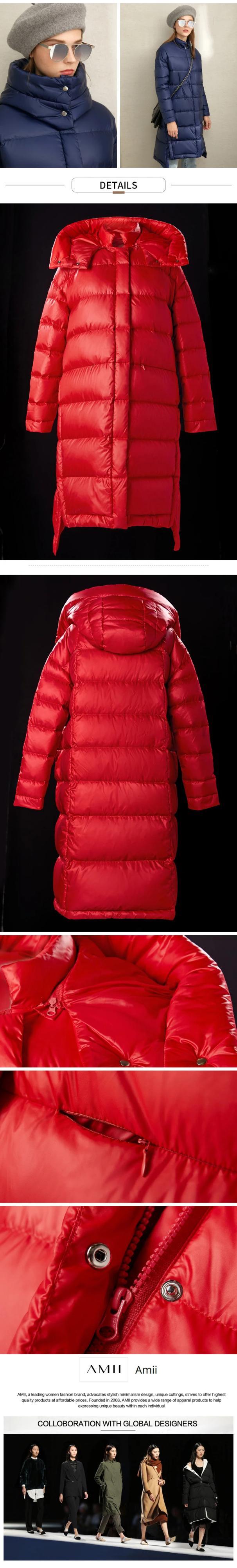送料無料 アパレル Amii ミニマリスト プリント ダウン ジャケット 冬 厚手 非対称ポケット サイド スリット フード付き ダウン コート パーカー 11890004 ウィンター 冬物 AE12122237607384006