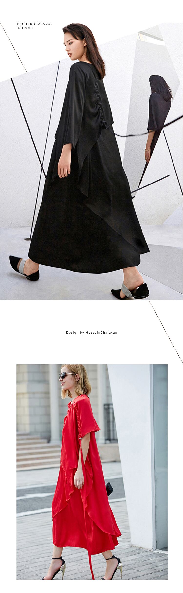 送料無料 アパレル AMII ミニマリズムロングドレスの女性 2022 秋ピュアシルクルーズ通勤芸術的なスプライシング Vestidos 12030635 オータム 秋物 AE121222366048857916