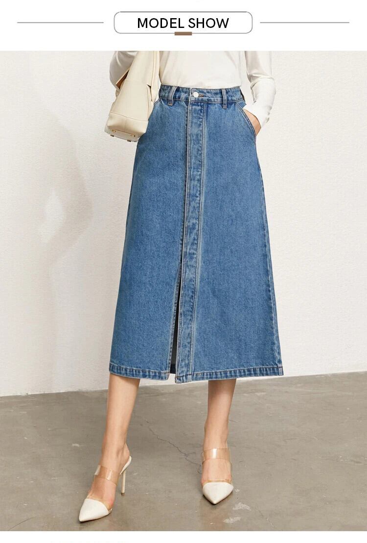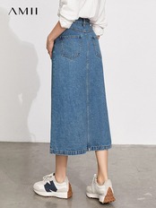 送料無料 アパレル Amii ミニマリズムデニムスカート女性夏ポケットスリットジーンズ A ラインミディスカートオフィスレディスカート 12130301 サマー 夏物 Aライン 会社 学校 通勤や通学にも AE12122237385200767 | mihatudai(みはつばい)ネットショッピングならmihatudai
