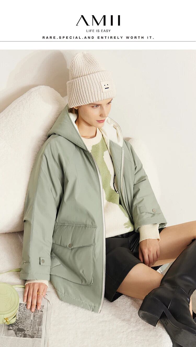 送料無料 アパレル AMII ミニマリズム冬のジャケットの女性 2022 冬ルーズフード付き暖かいパッドパーカーコート 12130542 ウィンター 冬物 AE121222324776421147