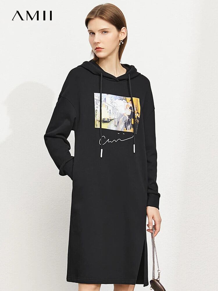 送料無料 アパレル AMII ミニマリズムドレス女性 2022 秋冬通勤ヴィンテージ芸術的なフード付きプルオーバートップス 12160038 オータム 秋物 ウィンター 冬物 ビンテージ AE121222388505736185