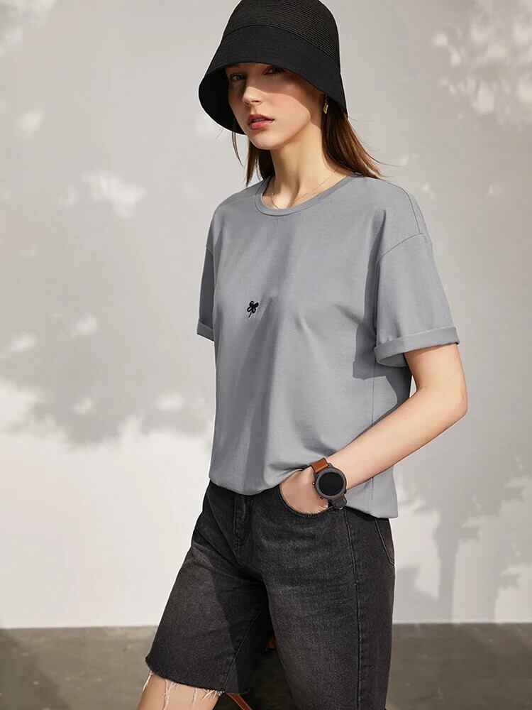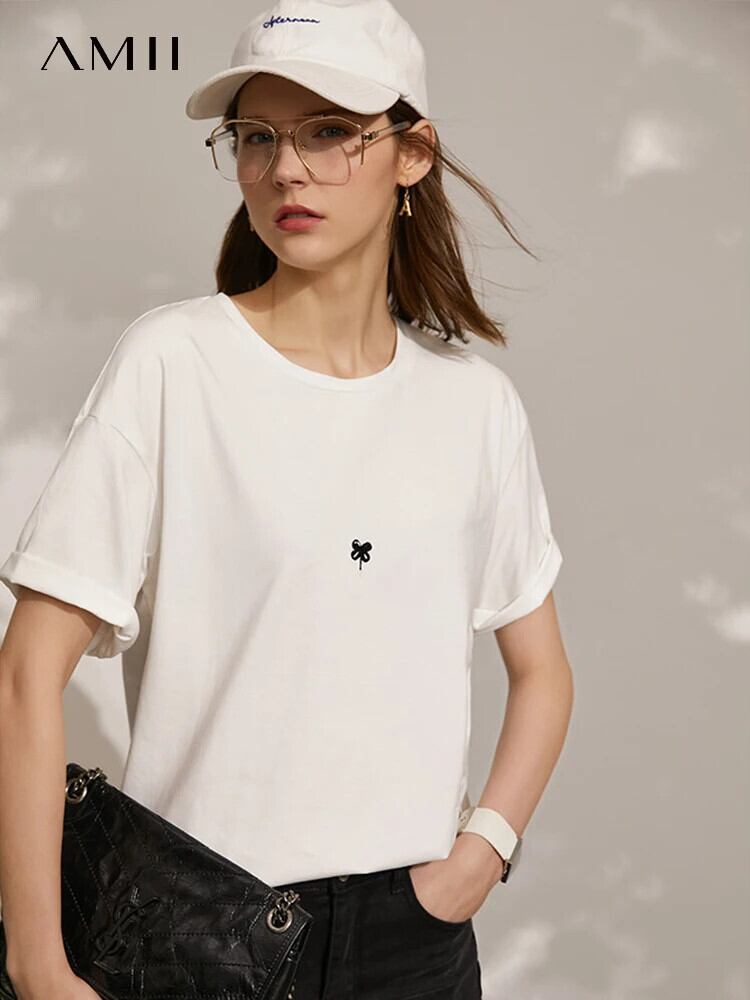 送料無料 アパレル AMII ミニマリスト Tシャツ女性 2022 夏通勤芸術刺繍ヴィンテージスリーブ O ネックプルオーバートップス 12220086 サマー 夏物 Oネック ビンテージ AE121222354339383432