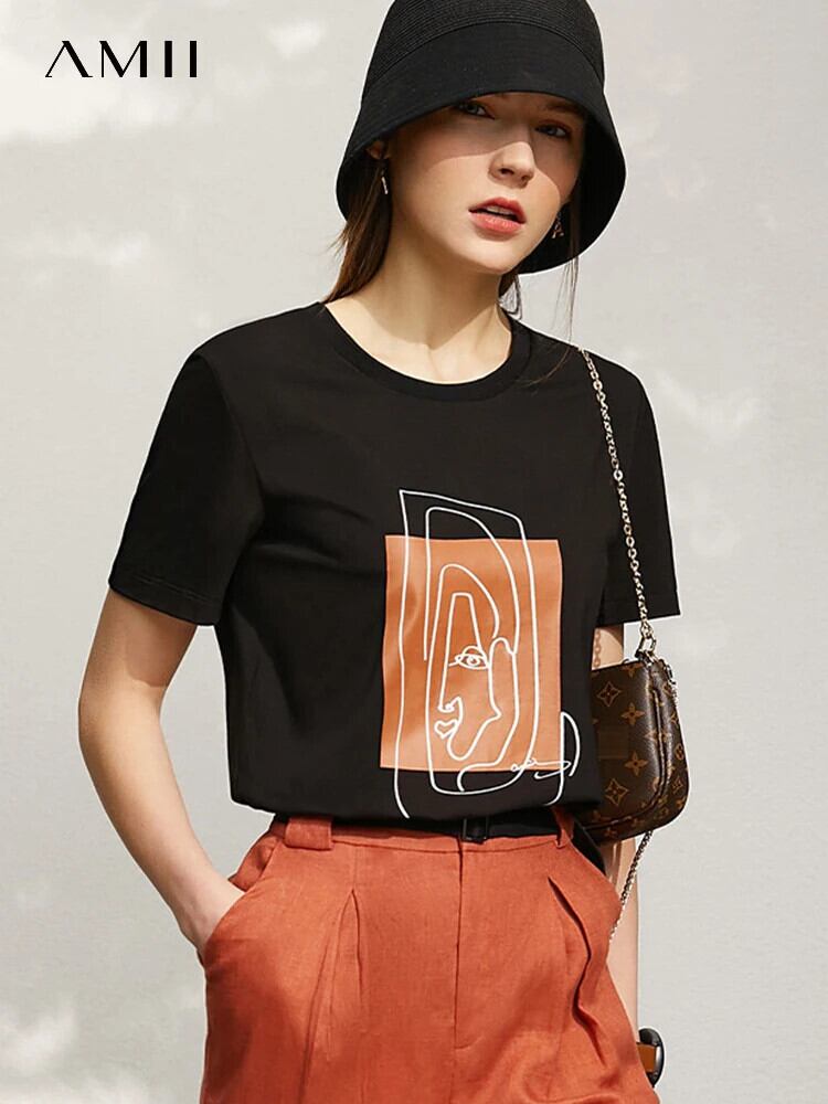 送料無料 アパレル AMII ミニマリズムトップ女性半袖 2023 夏プリント Tシャツクールテックアイスコットン O ネック黒 Tシャツ 12342527 ショート ブラック ハーフスリーブ サマー 夏物 Oネック AE121222314707231786 | mihatudai(みはつばい)ネットショッピングならmihatudai