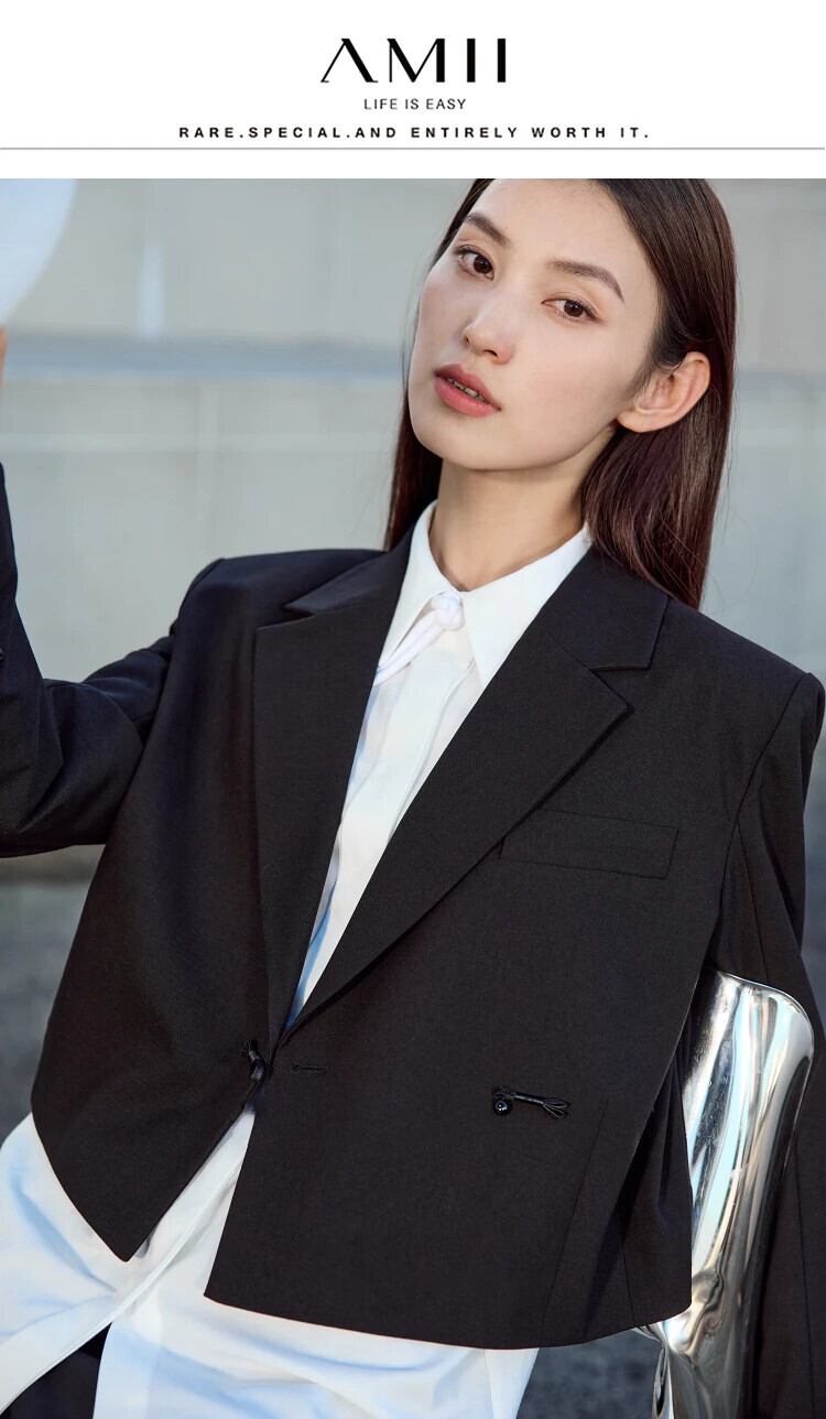 送料無料 アパレル AMII ミニマリズム中国風ブレザー女性 2023 秋ショート基本コートシンプルなオフィスレディビジネススーツ 12343214 オータム 秋物 会社 学校 通勤や通学にも AE121222381085327540 | mihatudai(みはつばい)ネットショッピングならmihatudai