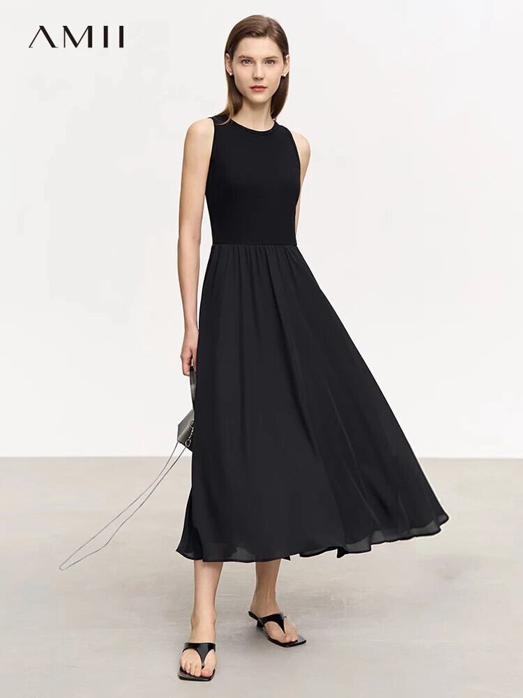 送料無料 アパレル AMII ミニマリズムスリム女性タンクドレス 2023 夏パッチワークシフォンウエスト O ネックオフィスレディ固体 Vestidos 12342321 サマー 夏物 Oネック ソリッドカラー 会社 学校 通勤や通学にも AE121222340197763813 | mihatudai(みはつばい)ネットショッピングならmihatudai