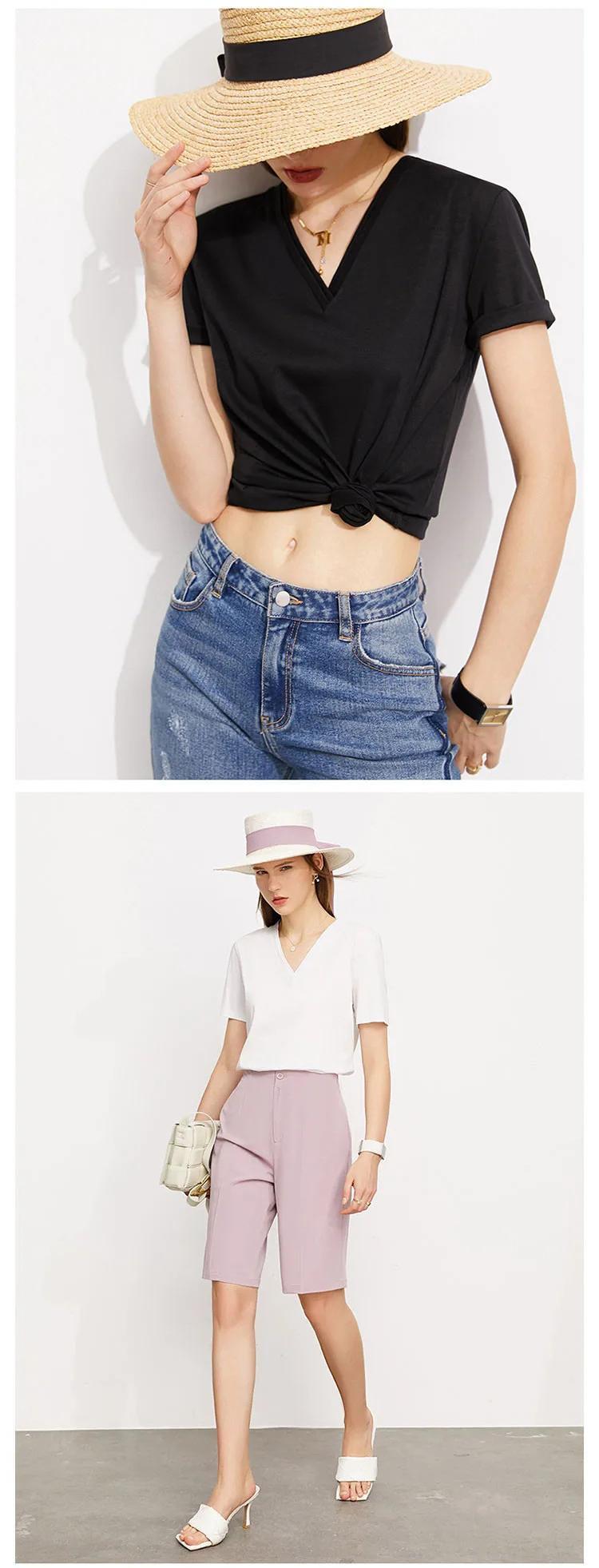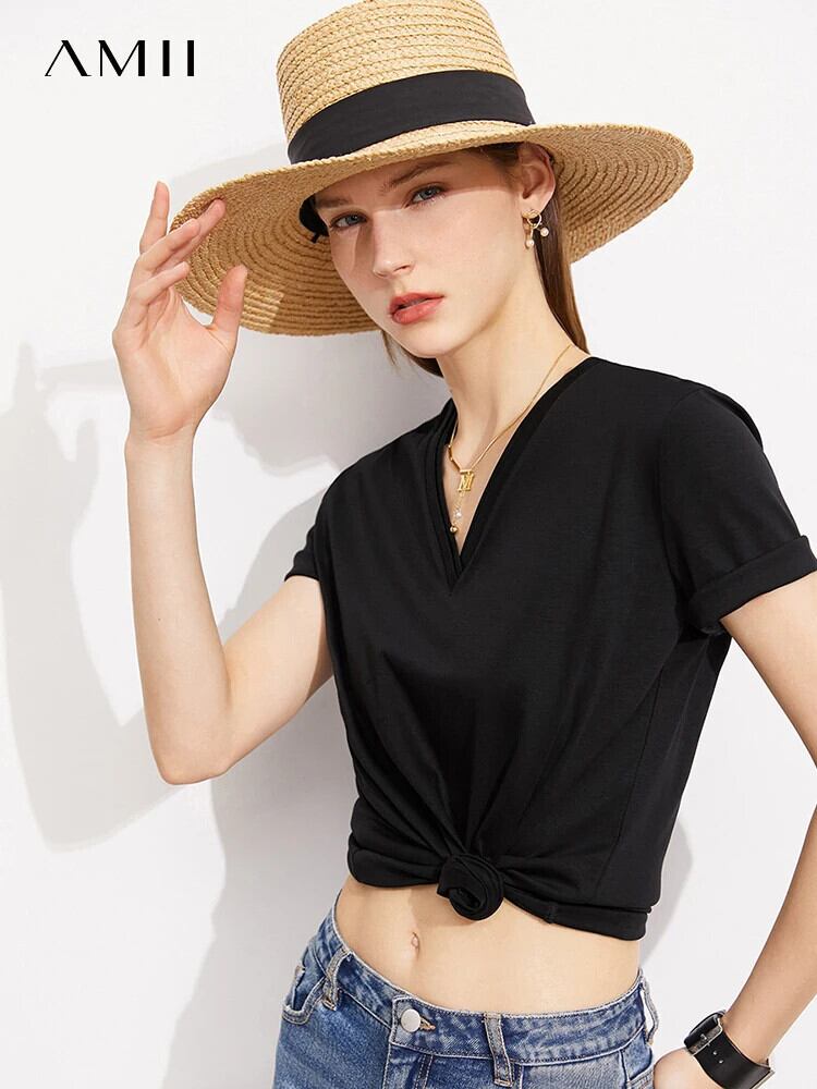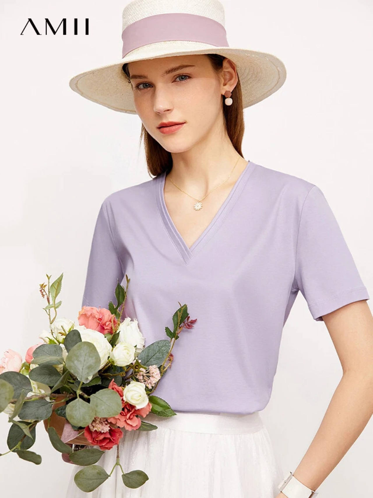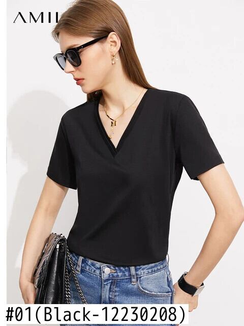 送料無料 アパレル Amii ミニマリズム 2023 夏の Tシャツ女性半袖 V ネック Tシャツアイスクール Tシャツトップス 12230208 ショート ハーフスリーブ サマー 夏物 Vネック AE12122232867598490