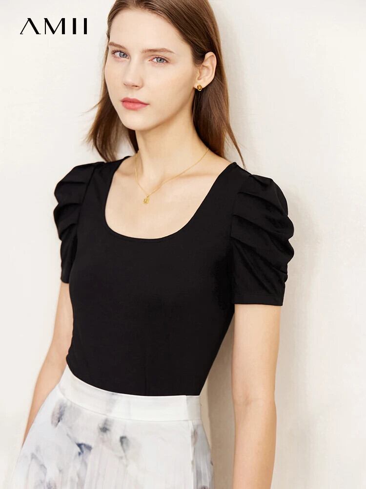 送料無料 アパレル Amii ミニマリズム 2023 夏の Tシャツ女性の袖 U ネックオフィス Tシャツソフト Tシャツスリムトップス 12230278 サマー 夏物 会社 学校 通勤や通学にも AE121222392459076426 | mihatudai(みはつばい)ネットショッピングならmihatudai