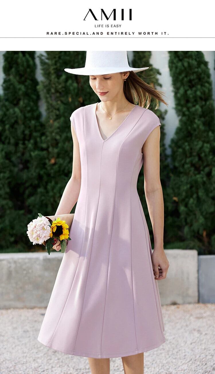 送料無料 アパレル AMII ミニマリズムドレス女性 2023 夏プルオーバー Vestidos ノースリーブ V ネックオフィスレディ Xline 黒ドレス 12240534 ブラック サマー 夏物 会社 学校 通勤や通学にも AE121222331649027709 | mihatudai(みはつばい)ネットショッピングならmihatudai