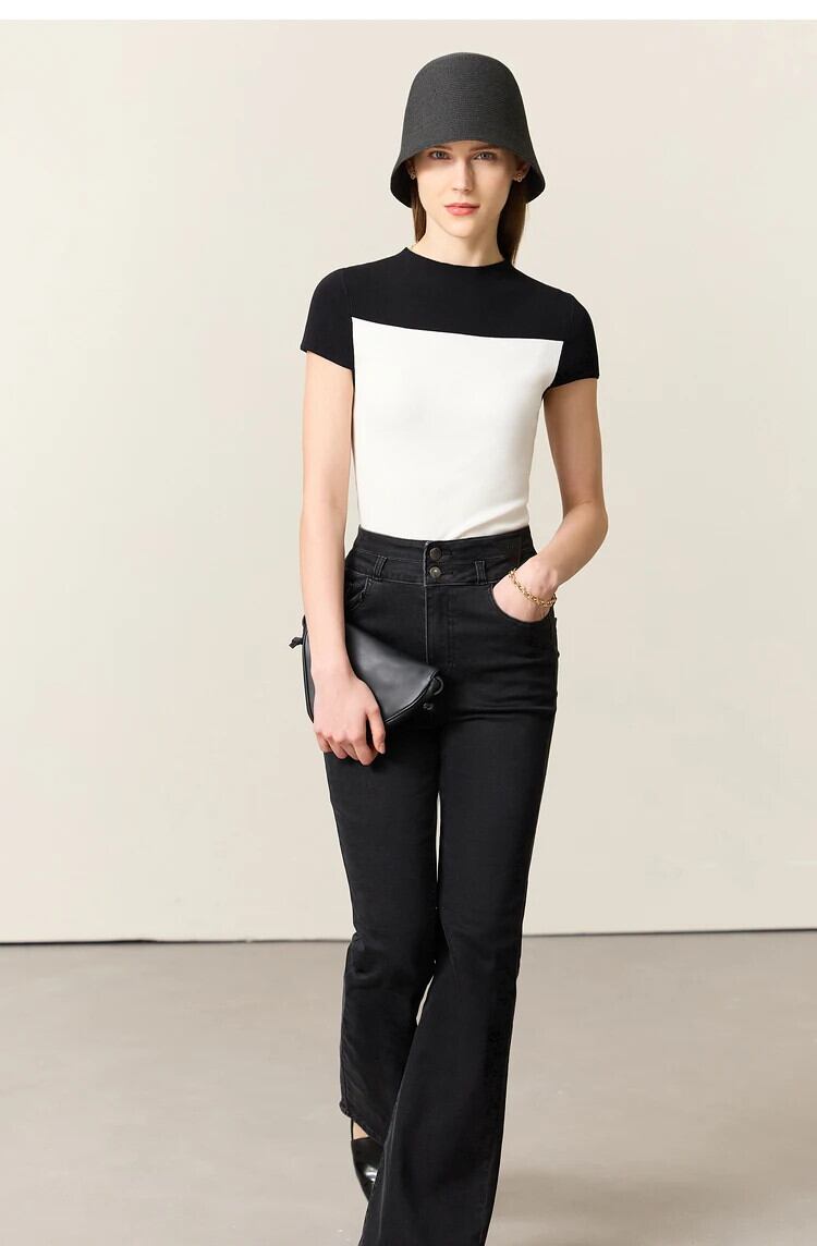 送料無料 アパレル AMII ミニマリズムレディース半袖ニットウェアスリムパッチワーク対照的な色 2023 夏トップス 72341061 ショート ハーフスリーブ サマー 夏物 AE12122237454724450 | mihatudai(みはつばい)ネットショッピングならmihatudai