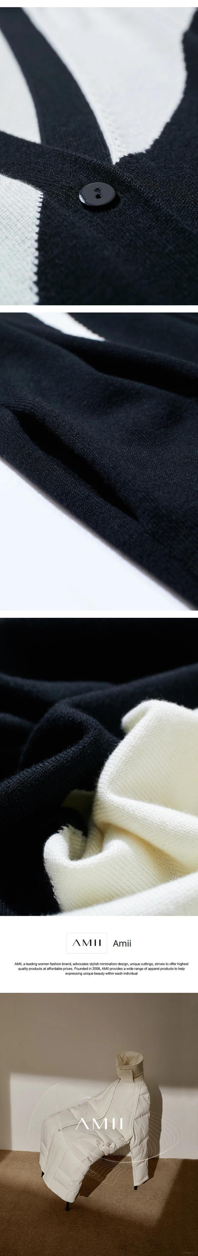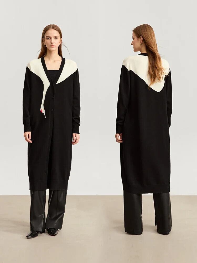 送料無料 アパレル AMII ロングウールカーディガン女性 2023 冬 V ネックコントラストステッチクレーンジャカード怠惰な風ルーズセーター 12343394 ウィンター 冬物 Vネック AE121222336763337147 | mihatudai(みはつばい)ネットショッピングならmihatudai